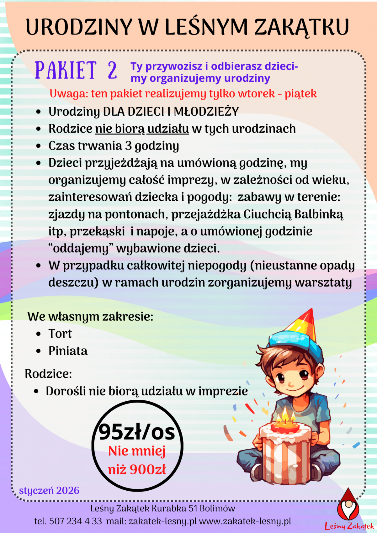 W ramach usługi możecie korzystać z całego terenu Zakątka i wszystkich miejsc zabaw w godzinach otwarcia (13.00-20.00).