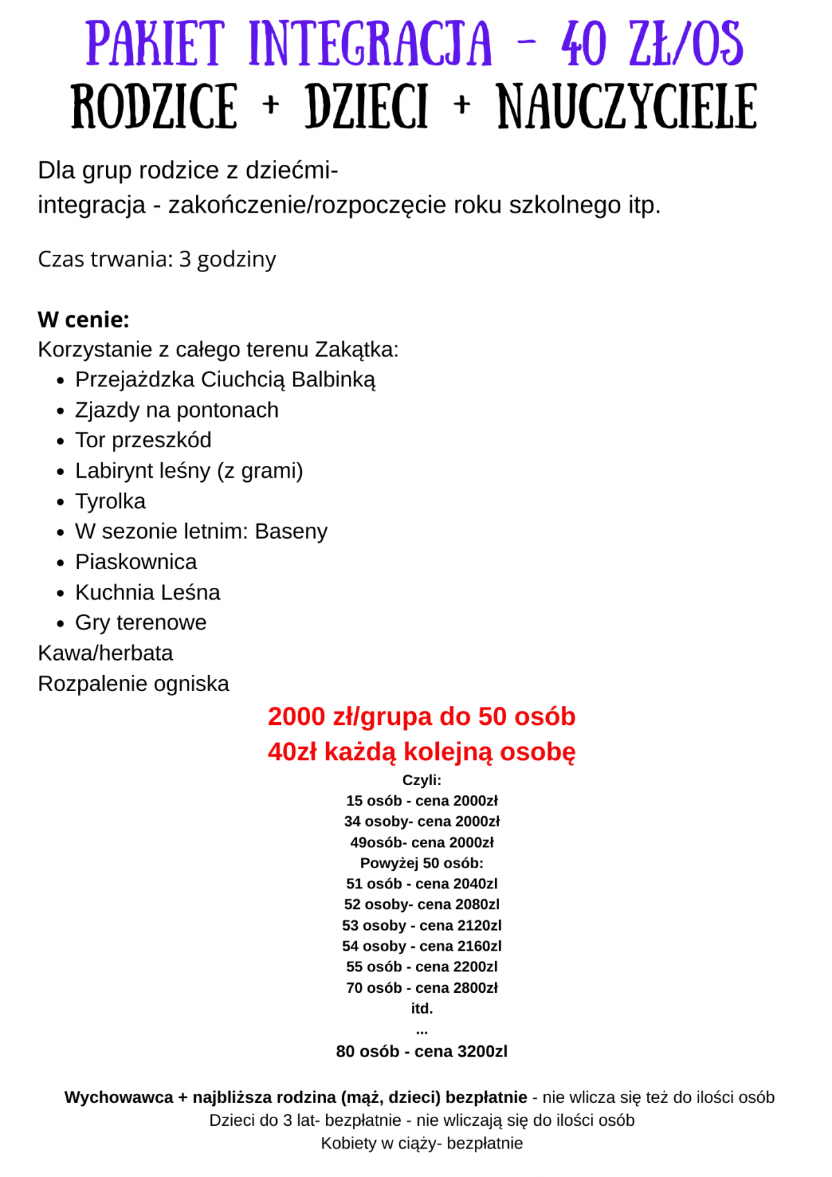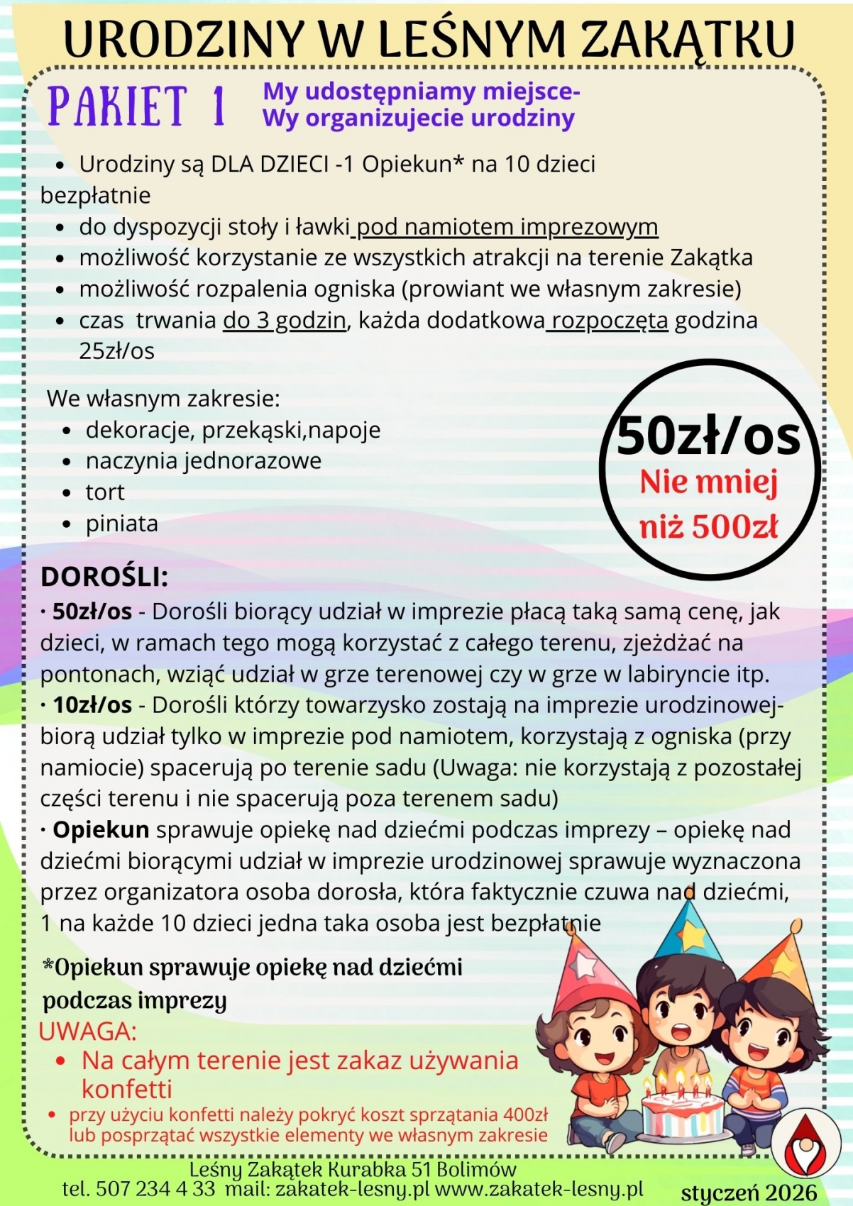 Cena: 50 ZŁ/OS DOROŚLI oraz DZIECI powyżej 3 LAT)